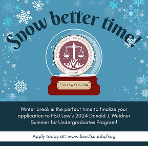 During my time working as a Graphic Design and Events intern for the Florida State University College of Law's Office of Student Advancement, I made a variety of print and digital assets to support promotion of events and programs, especially for the Donald J. Weidner Summer for Undergraduates program. I also created social media content and graphics and managed the office's various social media channels. This was my first experience creating print and digital assets for an organization. Along with graphic design skills, I also gained a wealth of knowledge in event planning and execution.